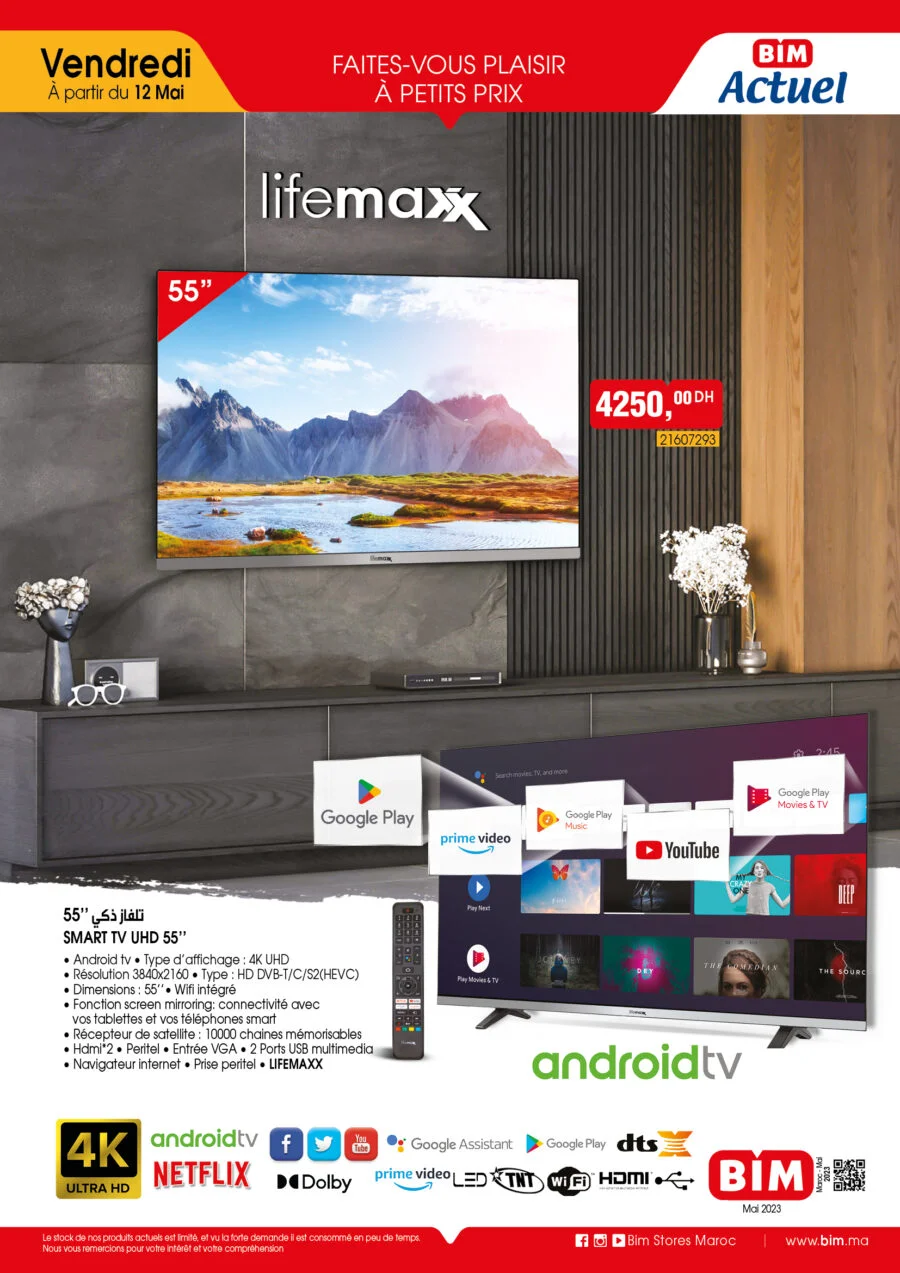 Catalogue Bim magasin Alaouiyine El Jadida du 3 au 7 Mai 2024 Sélection de produits promotionnels disponibles du 3 au 7 mai 2024 chez BIM, une chaîne de magasins d’électroménager et d’articles ménagers au Maroc. Les produits présentés dans le catalogue incluent : TV Android LifeMax 40″au prix de 1749 …