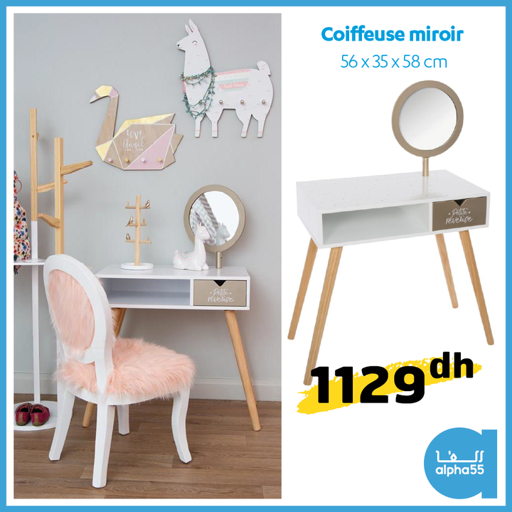 Donnez plus de confort à la chambre de vos enfants🤩 Découvrez nos coiffeuses et tables aux designs simples et fonctionnels. #Surprises #Alpha55 #Alpha55maroc #Merssultan #Anfaplace #Decoration #naissance #universbebe #interiores #decoration #interieur #decor #interiorstyling #homedesign #homedecor #homedecoration #homestyle #instahome #instadecor #kidsdecor #kidsinterior #kids #roomdecor #boysroom #girlsroom #babyroom #childrensroom #childrensdecor #kidsroomideas #Chambrebebe …
